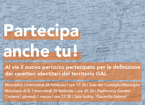 Il GAL Valli Marecchia e Conca ha avviato un percorso partecipato per l’identificazione delle caratteristiche identitarie del territorio volto alla creazione di un brand per la promozione unitaria delle due Valli, con lo scopo di trovare un segno grafico che posso raccontare una storia vera, ricca di persone e di emozioni reali.