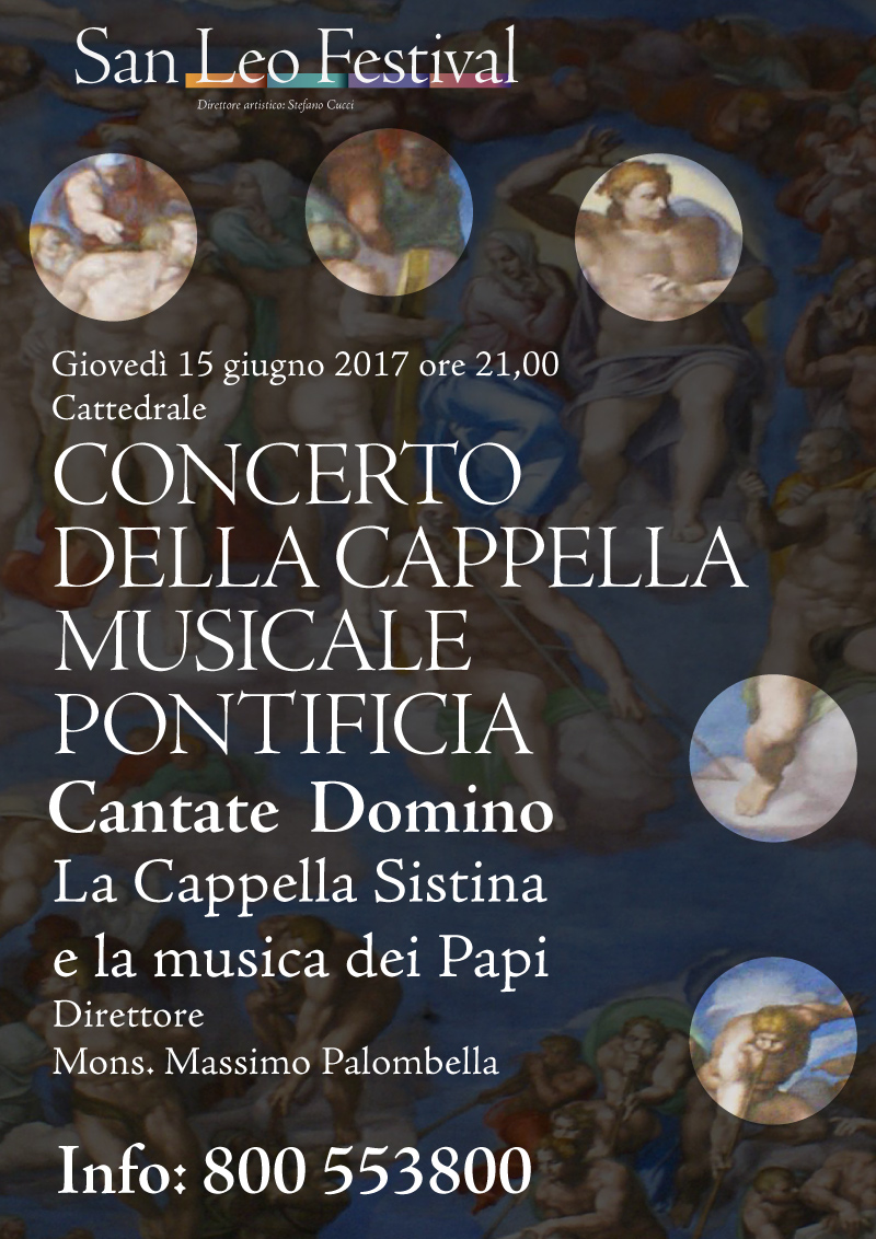Eccezionale inaugurazione del San Leo Festival 2017 con il Coro della Cappella Sistina uno dei più antichi e più prestigiosi complessi corali del mondo che, fondato 1471, nei secoli ha tramandato l’immenso patrimonio di musica sacra della Chiesa Cattolica assolvendo il compito di coro personale del Papa in tutte le funzioni liturgiche solenni nella Basilica di San Pietro.